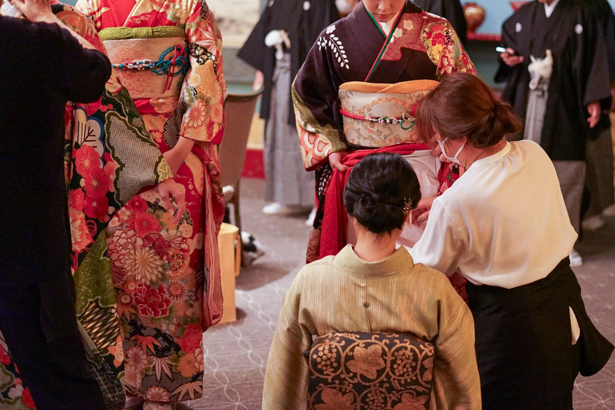 1ヶ月〜前日スタッフが会場に集合し、段取りに沿って着付けを実施。